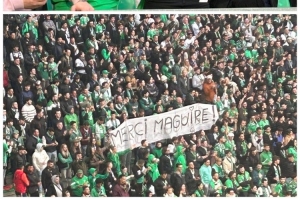 圣埃蒂安球迷在比赛中身穿感谢马奎尔的球衣,并拉出横幅,上面写着“谢谢马奎尔”,嘲讽同大区的死敌里昂。